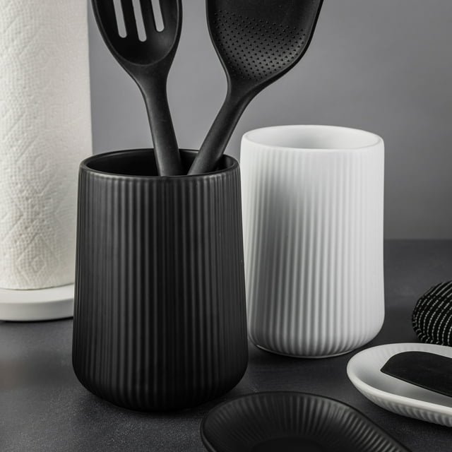 Home > 2 Pack 6.2" Ribbed Ceramic Kitchen Utensil Holder, Black