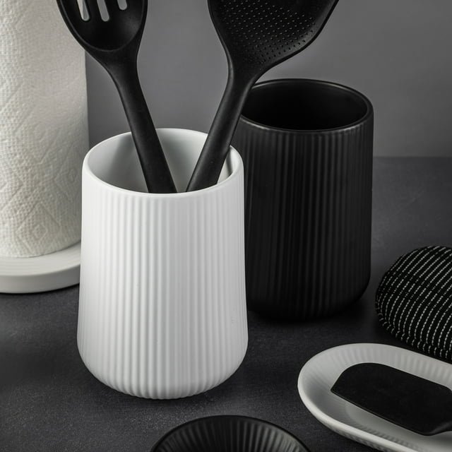 Home > 2 Pack 6.2" Ribbed Ceramic Kitchen Utensil Holder, White