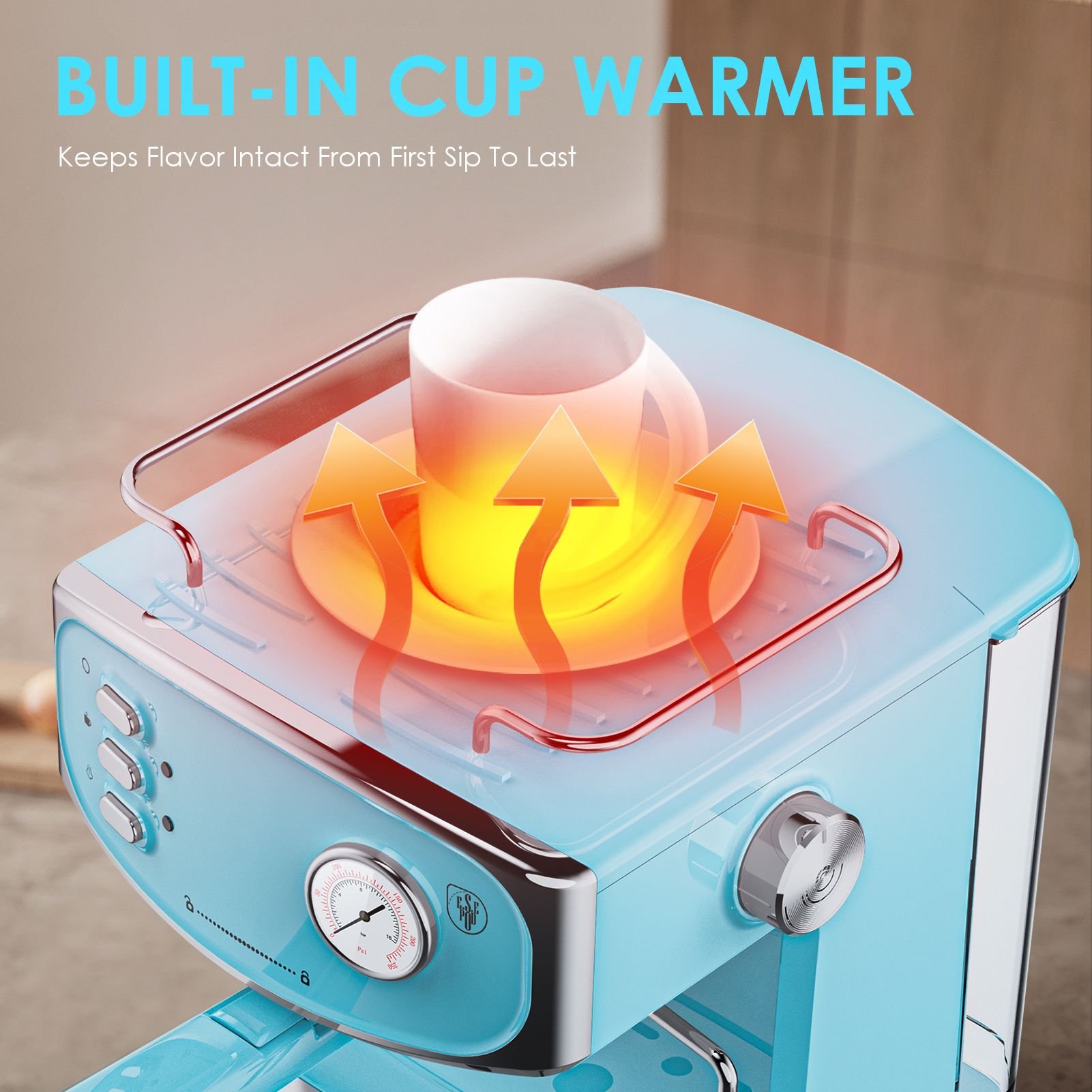 5. Safe, Complete Package + Cup Warmer for Fresh Flavor Built-in safety features (overpressure and overheating protection) ensure long-term, worry-free daily use. It also includes a built-in cup warmer—keeps your cups preheated to maintain coffee’s optimal temperature, preserving rich flavor from the first sip to the last. The package comes with all essentials: 1 instruction manual, 1*1-cup filter, 1 ESE pod filter, 1 measure scoop, and 1 porta-filter.