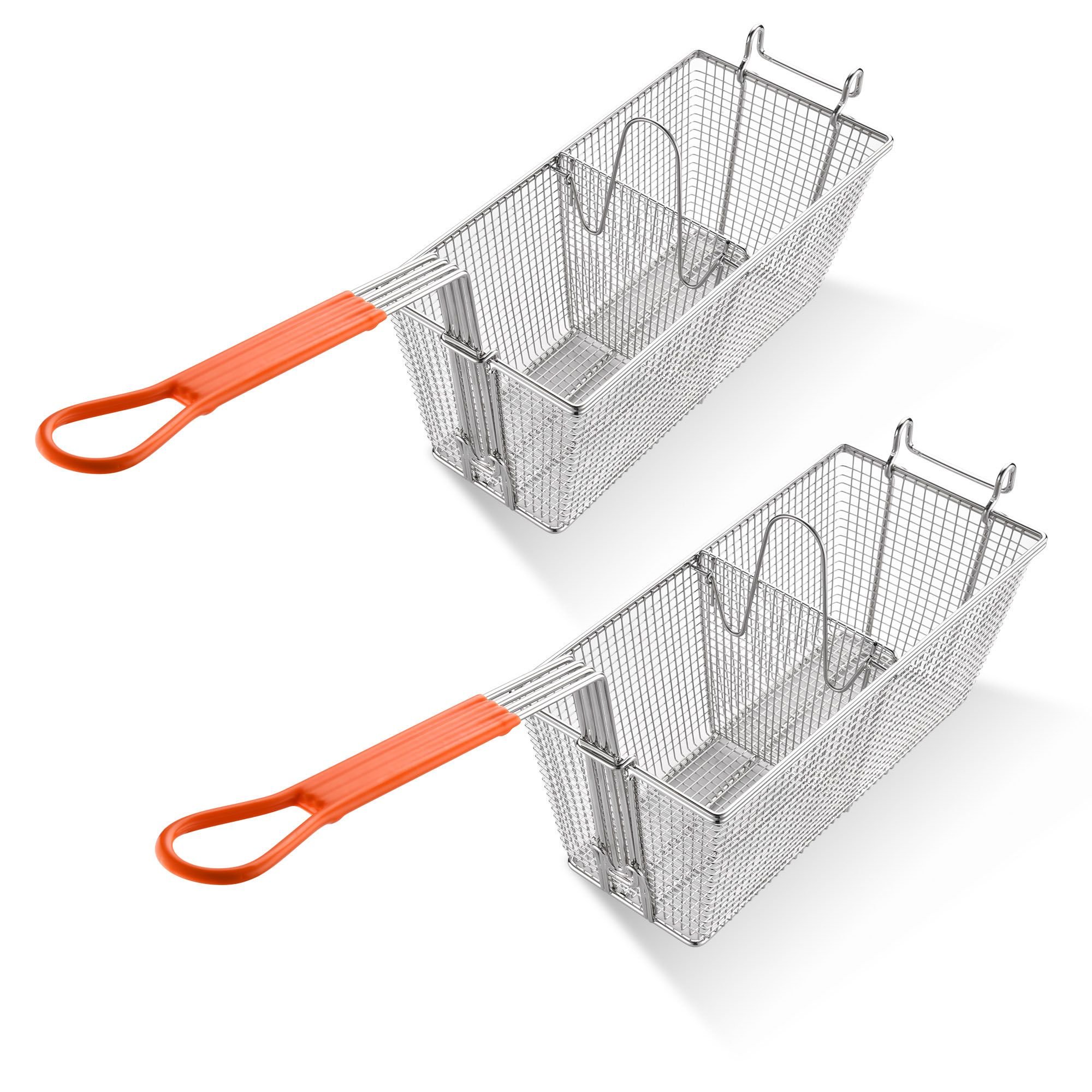 - Large Capacity - This Set of 2 pcs Deep Fryer Baskets, each featuring a large size of 13" x 6 5/16" x 5 7/8" for holding up to 4.4 Lbs French fries, perfect for storing all your foods in one place, helping you to avoid repetitive fishing around or over-frying of individual food, ideal for both commercial and home use