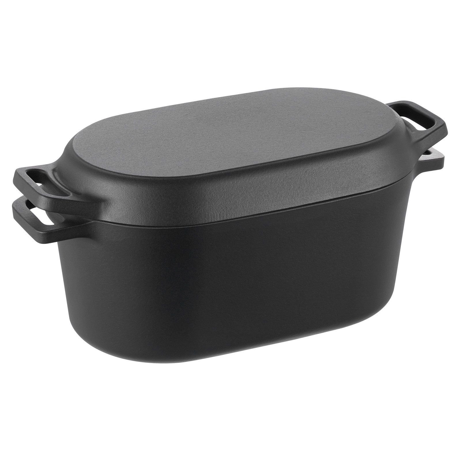 The practical 2-in-1 enameled dutch oven features a deep pot for stewing, stir-frying, and baking, while the flat-bottom frying pan is ideal for grilling. It meets all your cooking needs!