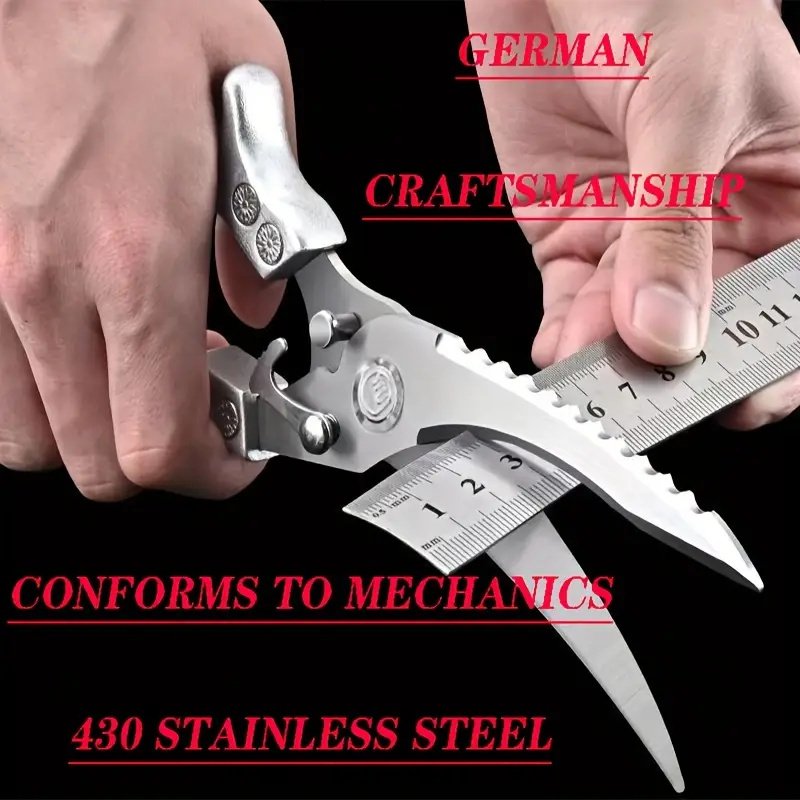 German industrial grade stainless steel kitchen scissors designed specifically for modern kitchens, forged with high carbon stainless steel, featuring automatic rebound function and detachable design, making them the perfect tool for chefs, home chefs, and culinary enthusiasts to easily handle chicken, fish, meat, fruits, and vegetables!